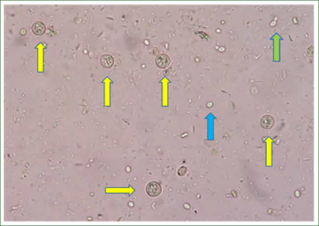 Las técnicas de examen en fresco y teñida con yodo Lugol son más rápidas de realizar y han demostrado que pueden ser de utilidad para una evaluación inicial de rutina (Kimura et al., 2004) seguida de una técnica de concentración y, en caso de no tener aún la certeza de si identificación, utilizar técnicas de tinción permanentes.